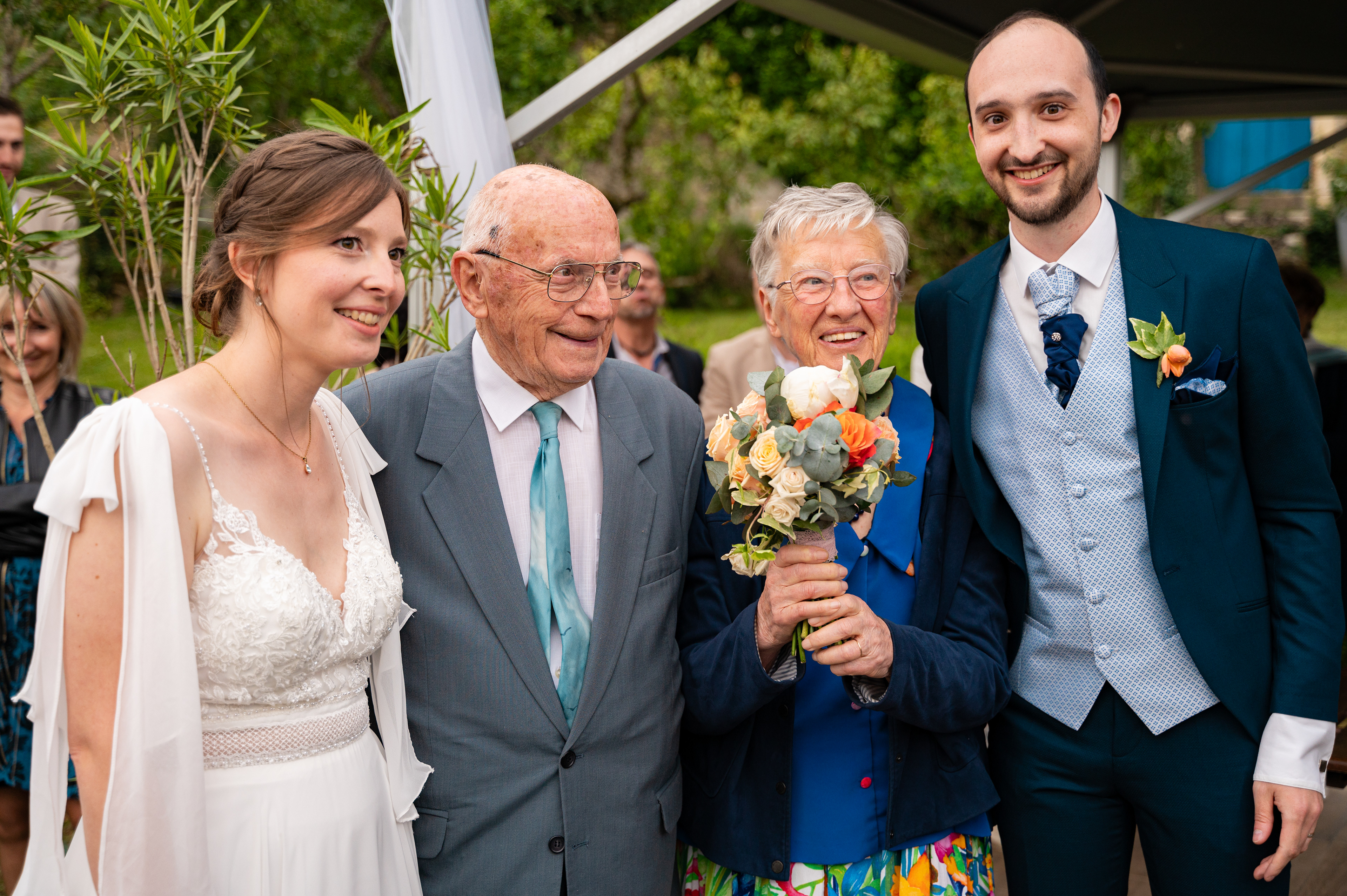 Cette galerie est un extrait de leur mariage. Une sélection volontairement resserrée, pensée pour préserver l'intimité des invités et respecter le droit à l'image, notamment celui des enfants.